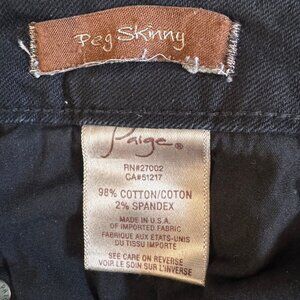 PAIGE Peg Skinny Black Denim Jeans Women’s Size 31