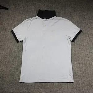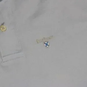 Barbour Polo Shirt Mens Medium Light Blue Gold Outdoor Preppy Logo 100% Cotton