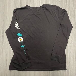 Black long sleeve shirt with motivational text patch. Comfortable and stylish.