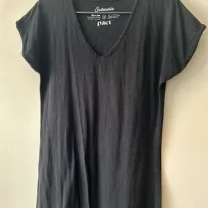 Embrace effortless style with this black maxi dress from Pact, featuring a chic v-neckline, dolman short sleeve and slide slits. Designed in a sheath style, this dress offers a relaxed fit perfect for casual occasions.