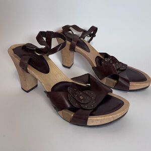 ❌SOLD❌ Kenneth Cole Vintage Y2K Flower Brown Leather Wooden Heels