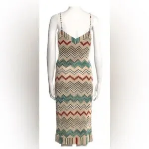 Stylish Missoni midi dress with signature zigzag pattern. Features a mix of vibrant colors. Perfect for any occasion.