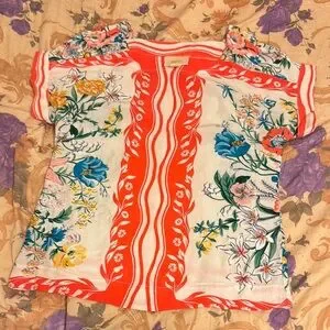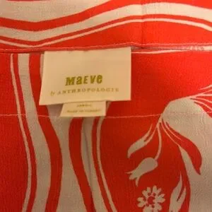 Add a bold, boho flair to your wardrobe with this beautiful Maeve by Anthropologie top! Featuring a striking red and white abstract floral design with pops of colorful flowers, this piece is as unique as it is versatile. Perfect for summer, vacation, or everyday wear.