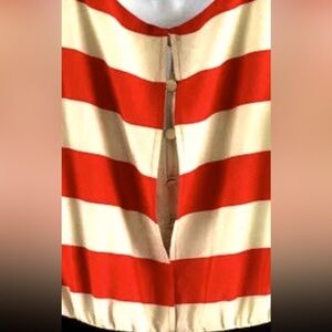 Chic top with bold red and cream patterns. Perfect for a stylish look.
