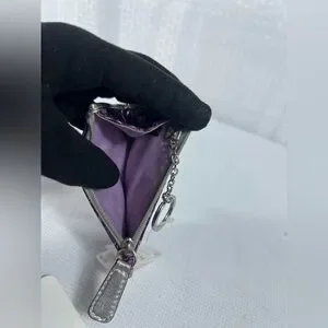 • Coach Mini Skinny ID/Zip Coin Purse (F43352) – Zippered top with key ring, card slots, and silver leather trim.