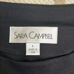 Sara Campbell black short sleeve fur trim cheetah front pockets swing dress