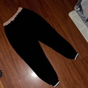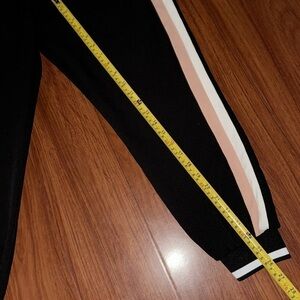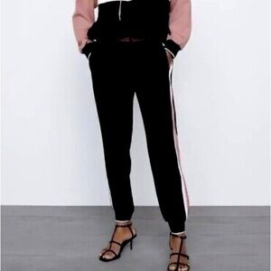 Zara track suit set 2 piece hoodie pants joggers pull on side stripe black dusty rose white