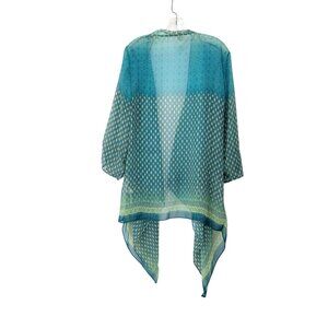 Chico's Sheer Open Front Kimono Cardigan Size 2, Women's Large Blue & Green Geom