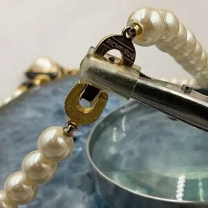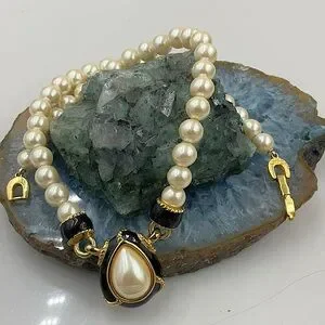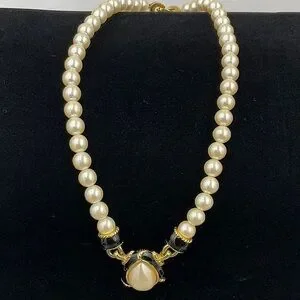 Vtg. Richelieu 16” Elegant White Pearl Necklace With Black & Gold Accent