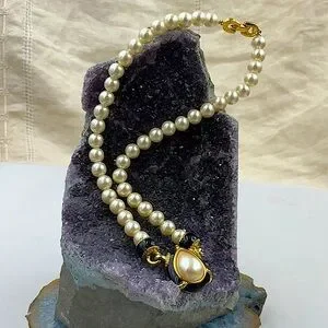 Vtg. Richelieu 16” White Pearl Necklace With Black & Gold Accents. This Stunning Pearl Necklace Featuring Elegant Gold Accents. This Elegant Necklace Is The Perfect Accessory For Adding A Touch Of Sophistication To An Outfit & Is Ideal for Special Occasions. Excellent Condition.