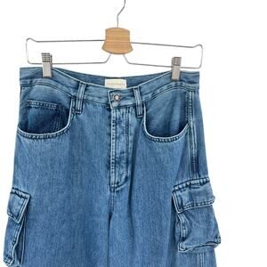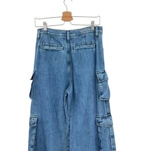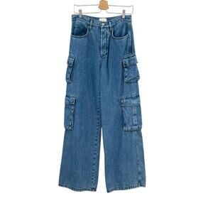 Favorite Daughter The Carly Cargo Jeans Wide Leg High Rise Denim Blue Size 28