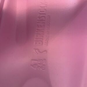 These Birkenstock sandals feature a vibrant pink color and a classic two-strap design with adjustable buckles for a secure fit. Made from lightweight EVA material, they are waterproof and perfect for casual outings. The contoured footbed offers comfort and arch support, making them a practical choice for everyday wear.