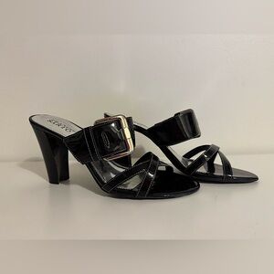 Y2K Franco Sarto Black Patent Leather Strappy Heels Sandals Size 10