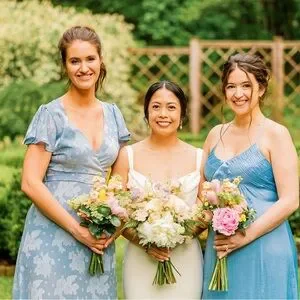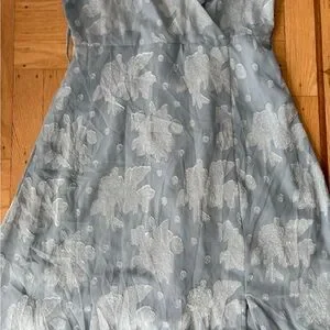 Elegant light blue dress featuring white floral embroidery. Perfect for special occasions.