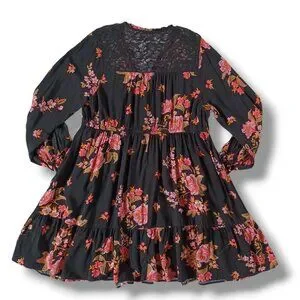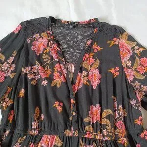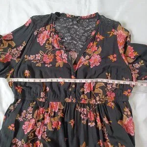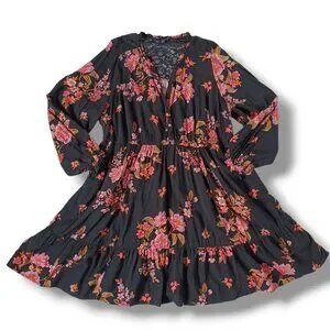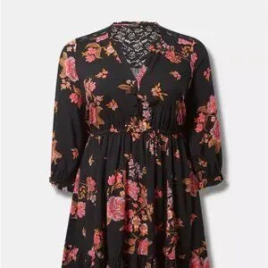 Torrid Mini Challis Shirt Dress Black Pink Floral Flowy Rayon Plus Size 2X 2