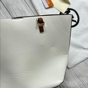 Michael Kors White and Brown Leather Tote Bag - needs strap