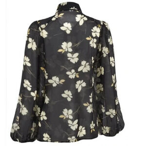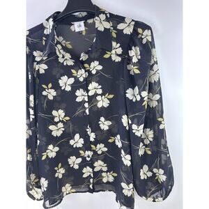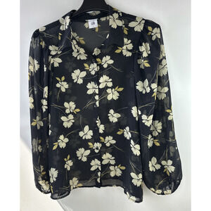 CAbi Cosmo Blouse Black Floral Chiffon Sheer Button Front Top 4159 Size Large