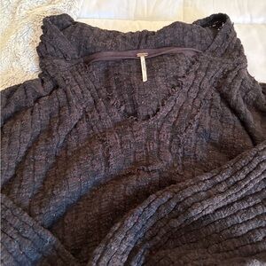 Free People swing hooded sweater/charcoal w/ multi colored knit.