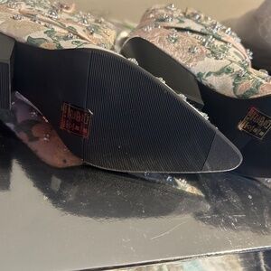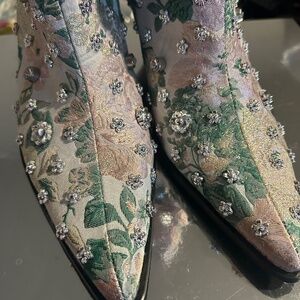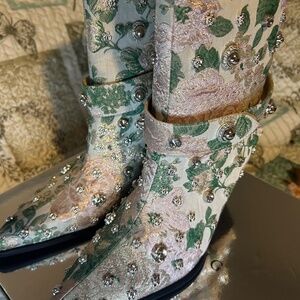 Step into luxury with these stunning Azalea Wang boots. The delicate blush hue adds a soft, feminine touch, while the bold, jewel-encrusted details elevate these boots into statement pieces. Whether you're dressing up for a night out or looking to add some sparkle to your everyday look, these boots bring the perfect blend of style and elegance. The pointed toe and sleek silhouette create a flattering, streamlined look, making them an essential addition to any wardrobe.