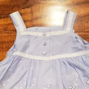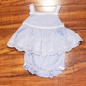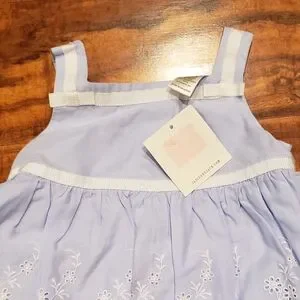Janie and Jack NWT 12-18 months periwinkle floral eyelet two-piece set. Bow accents on bloomers. Lined. Button enclosure on back. Gorgeous! 2013 Butterfly Dream line.