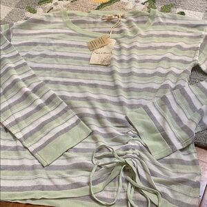Stylish striped top by Hem & Thread. Features green and gray stripes. Soft and comfortable fabric.