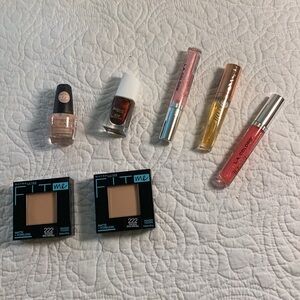 Maybelline L.A. Colors 7 Pc set Fit Me Foundation (222) Polish Lip gel & Oil NEW