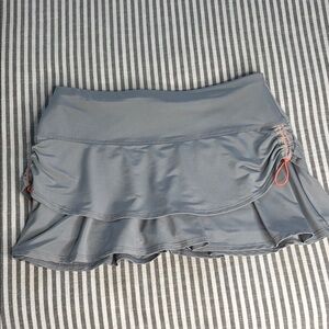 Super cute, gray lucky in love, skort with fun, bright orange ties on the side. Great condition.