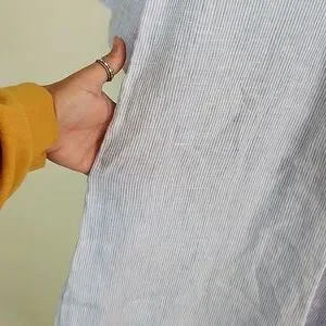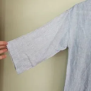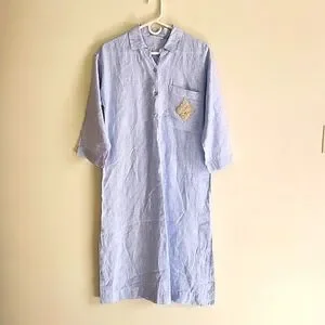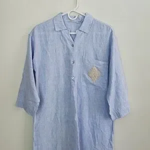 Soft Surroundings Linen Maxi Dress Blue White Striped Embroidered Side Slits Womens size Small.