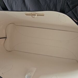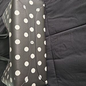 This elegant tote from Kate Spade showcases a playful black and white polka dot pattern, offering a perfect blend of style and practicality. Crafted with a structured design, it provides ample space for your daily essentials while maintaining a chic and timeless look.