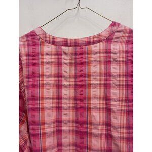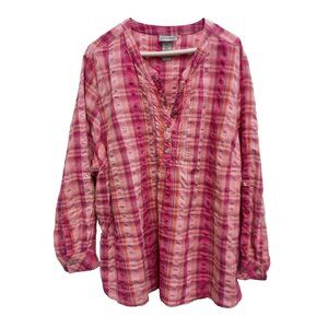 Catherines Womens BOHO Top Size 3X Pink Plaid 1/4 Button Long Sleeve Casual