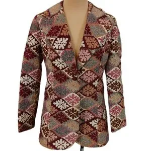 Vintage 70s Alex Colman Blazer Womens M Multicolor Woven Tapestry Boho Academia