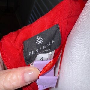 Faviana red long formal sweetheart gown ruched with cape train size 4