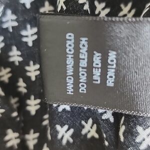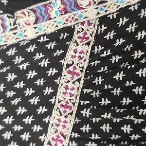 Super cute woman's top. three quarters sleeves. rounded bottom, v neck, beautiful embroidery details. Black and white print. Very soft and comfortable fabric