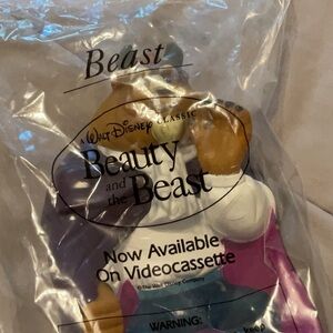 1992, from Pizza Hut. Beauty and the Beast rubber hand puppet figures. Beast, Belle, Cogsworth, and Chip. All have never been opened and are in their original packaging. It is hard to capture on photo through the plastic packaging, but the figures may have some wear from the packaging or some discoloration. From a smoke free home.
