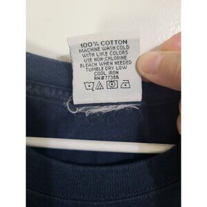 Has wash wear, fading, and cracking to graphics. Faint spot on front. No holes noted.