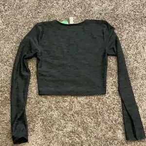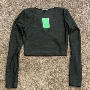 This stylish crop top from Forever 21 features a fitted design with a cropped length, perfect for a modern look. Available in elegant black and gray hues, it offers a sleek and versatile addition to your wardrobe. The full-length sleeves and clean design make it ideal for pairing with various outfits. It is BRAND NEW WITH TAGS and a size medium. The measurements are: sleeves 23 inches, bust 30 inches and the length is 15 inches from the top of the shoulder.