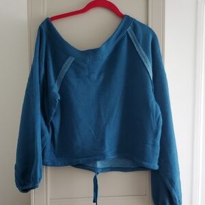 This blue sweatshirt from Lovers + Friends features a relaxed off the shoulder, boxy fit with a stylish tie front.