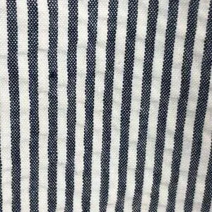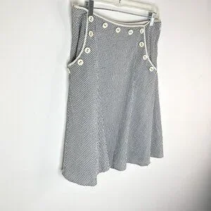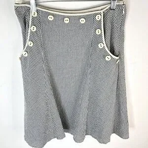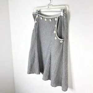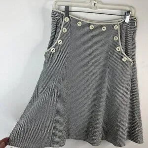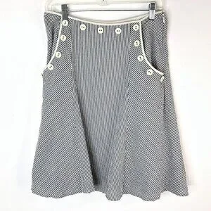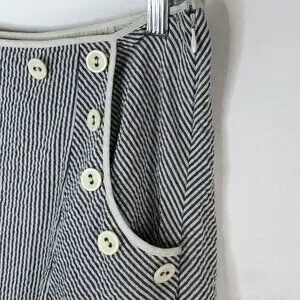 Anthropologie Viola Women's Lined Skirt Gray White Seersucker Striped Side Pockets with Ivory Button Accents and Hidden Side Zipper