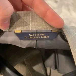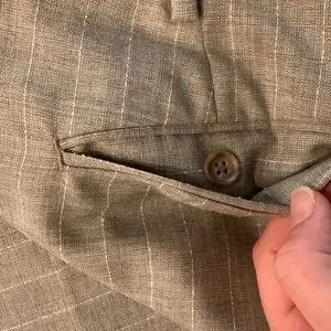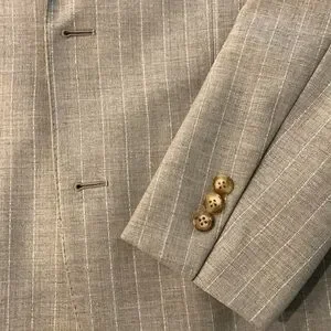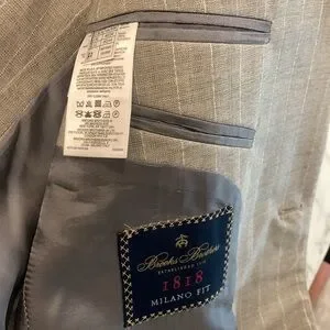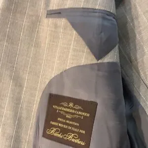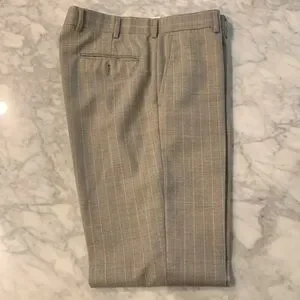 Brooks brother beige pinstripe wool suit, 40L blazer, 34” waist pant