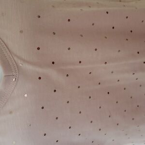 This Banana Republic top showcases a soft pink hue with shimmering printed rose gold dots that add a touch of elegance. Designed with short sleeves and a relaxed fit, it offers both style and comfort. Perfect for casual outings or dressing up, this tee is a versatile wardrobe staple.