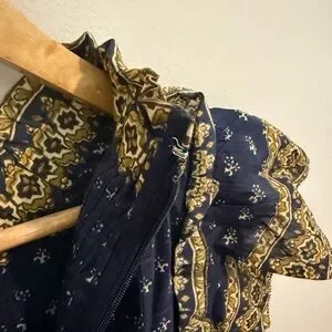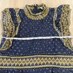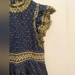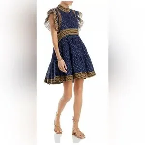 Romantic, effortless, and chic โ this SEA New York "Arlita" Flutter Sleeve Tunic Dress is your next go-to piece for polished everyday wear or laid-back elegance. Designed in a beautiful navy boho-inspired print, this dress features delicate flutter sleeves, a flattering mini silhouette, and a ruffled high neckline for a feminine finish.