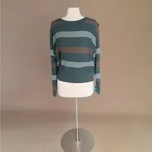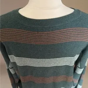 💐Thread & Supply Green Brown Striped Merino Wool Sweater XL Fall Crewneck 🍂🍃