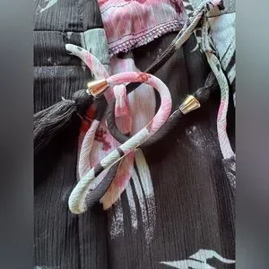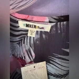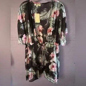Miken Black and Pink Sheer Open Front cinch tie waist Swim Cover-Up Size XL