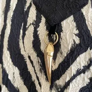 • Deep V-neck with contrast trim and gold-tone metal Tiger Tooth pendant