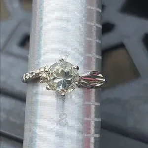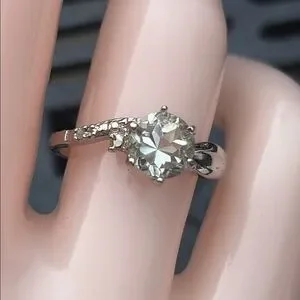 Natural Round ~1ct Prasiolite & Diamond Ring Sterling Silver Size 7.5