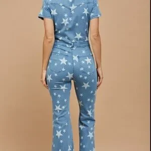 NWT WISTERIA LANE Star Print Denim JUMPSUIT