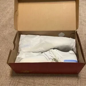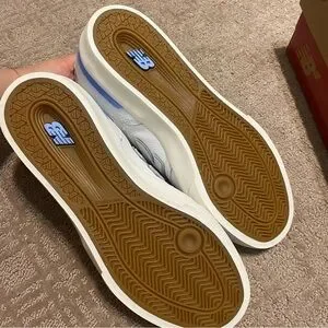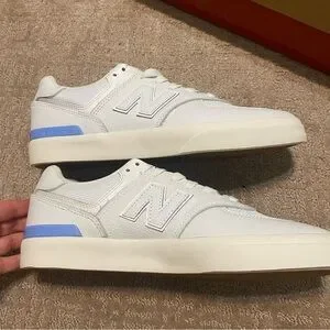 Brand new in box. New Balance Numeric 574 Vulc Shoes. White sneakers with baby blue detail. Purchased these as a gift for someone, and the size was too small for them. Missed the return date.