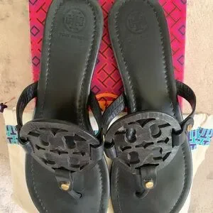 Tory Burch Black Logo Thong Sandals