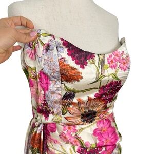 Pink and white floral (100% Polyester). Sheath. Strapless neckline. Sleeveless. Back zipper closure. Made in the USA of imported fabric.