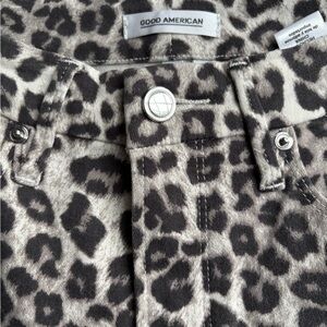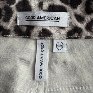 Good waist crop from good American animal print pants. Chic animal print pants. Adds flair to any outfit. Inseam 26”. Excellent condition.